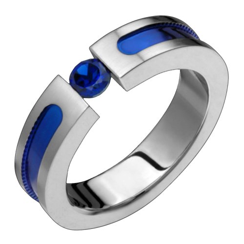 Bleu Dark Blue Titanium Band with Tension Set Sapphire. Choose your Color for Free! Feature